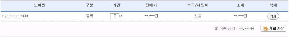 - 새로계산 버튼을 클릭해 변경된 서비스 내역에 대한 총 상품 금액을 확인하실 수 있습니다.